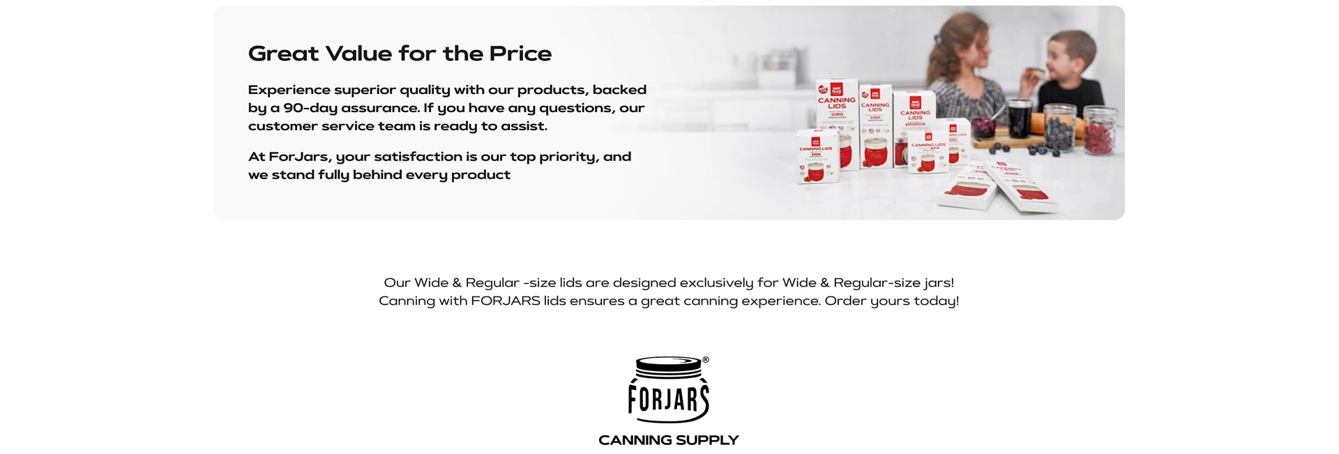 We offer a 90 day guarantee on our products. If your jams and jellies don't seal with our lids - just reach out to our customer support team and we're here for you. Our #1 priority here at Forjars is your happiness. This means we stand by our products 100%, no matter what, no questions asked. Happiness Guaranteed.